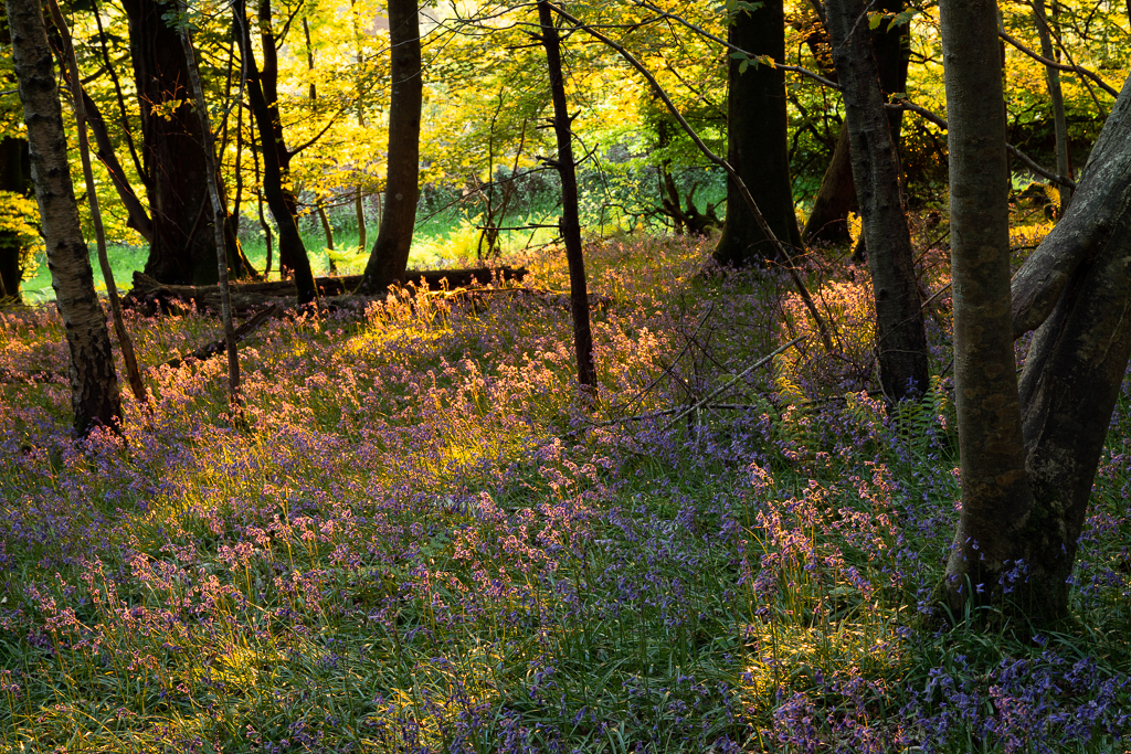 Before returning to the car I wandered briefly into Tower Wood, having seen a few Bluebells there as I walked past earlier. I felt the very low level of light (the sun was setting at this point) would back-light them attractively. For what it’s worth here is one of the photographs I took there.