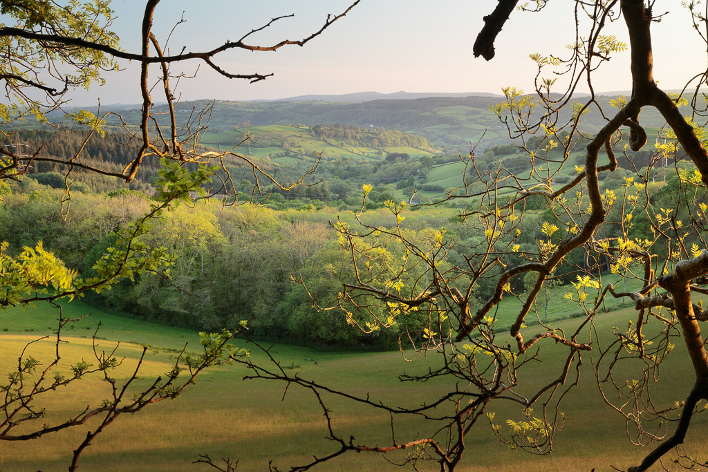 There was no way to remove the leaves and branches from this image, and I wouldn’t really want to, because it gives some idea of the secretive nature of these viewpoints in Devon – and it always feels to me a rather elusive, challenging to access, but very rewarding landscape.