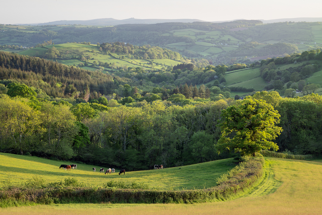 The light was perfect for modelling all the little details in the landscape. This is a rather different Devon many visitors do not really see: not the coast, not the moors, but steep hillsides densely packed with vegetation and undulating yet lovingly manicured fields and hedges. Hay Tor tends to be visible in most parts of South Devon and so is a useful marker point; when holding the map alongside this image with Hay Tor / Rippon Tor at the top and my location at the bottom, I can recognise the folds in the land, the little hills, the copses, the valleys, and see how everything fits. Somewhere in this expanse, though not visible from this point, thanks to all the folds in the land, are Christow, Coombe, the Canonteign Falls, Trusham, Hennock, and Lustleigh, not to mention three reservoirs. The River Teign is nowhere in sight here, but it runs far further than the entire length of the view, and much of what can be seen in this photograph drains into it.