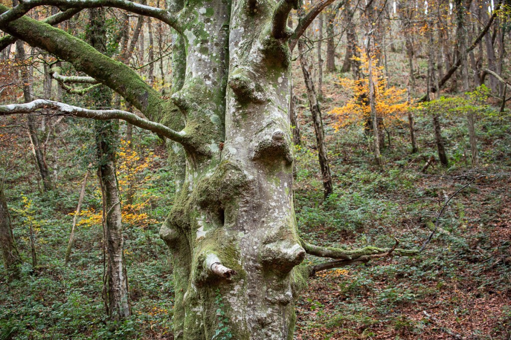 I continued, always choosing the left fork when the path split, to stay close to the river, knowing that, as always, I would take the alternative path on the way back. There’s a particular spot close to one of the points where the paths converge again, where I always look for a particular tree, which seems to stand as guardian to the younger trees in the very steep land behind it.