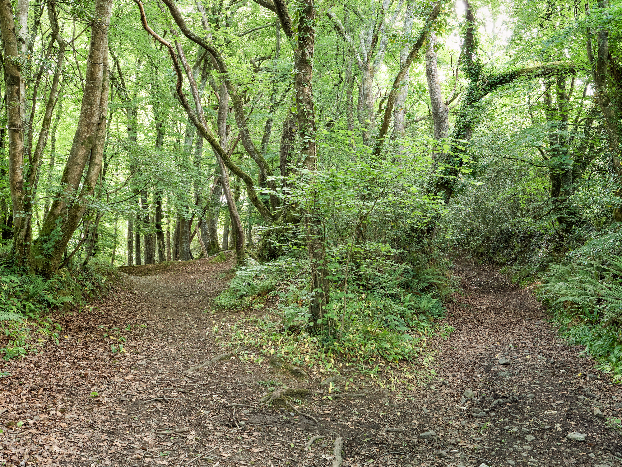 The remainder of June was strictly local for me this year. The pattern of being dropped off a few miles away and walking home continued another couple of times, and inevitably resulted in me revisiting the same areas and lanes and getting fascinated with the landscape’s changing colours again. But I’ll begin with an image just a mile or so from home where in the woodlands the lanes down to the river Teign are particularly gnarly and rutted, and divide in several places to continue around trees that have grown in their centres. It pleases me no end that I can be here within a half hour walk from my door – I just need to find good light and a little more time, but there’s no hurry. In the deep woodland shade the leaf colours were still quite fresh. Just how many shades of green are there, I wonder?