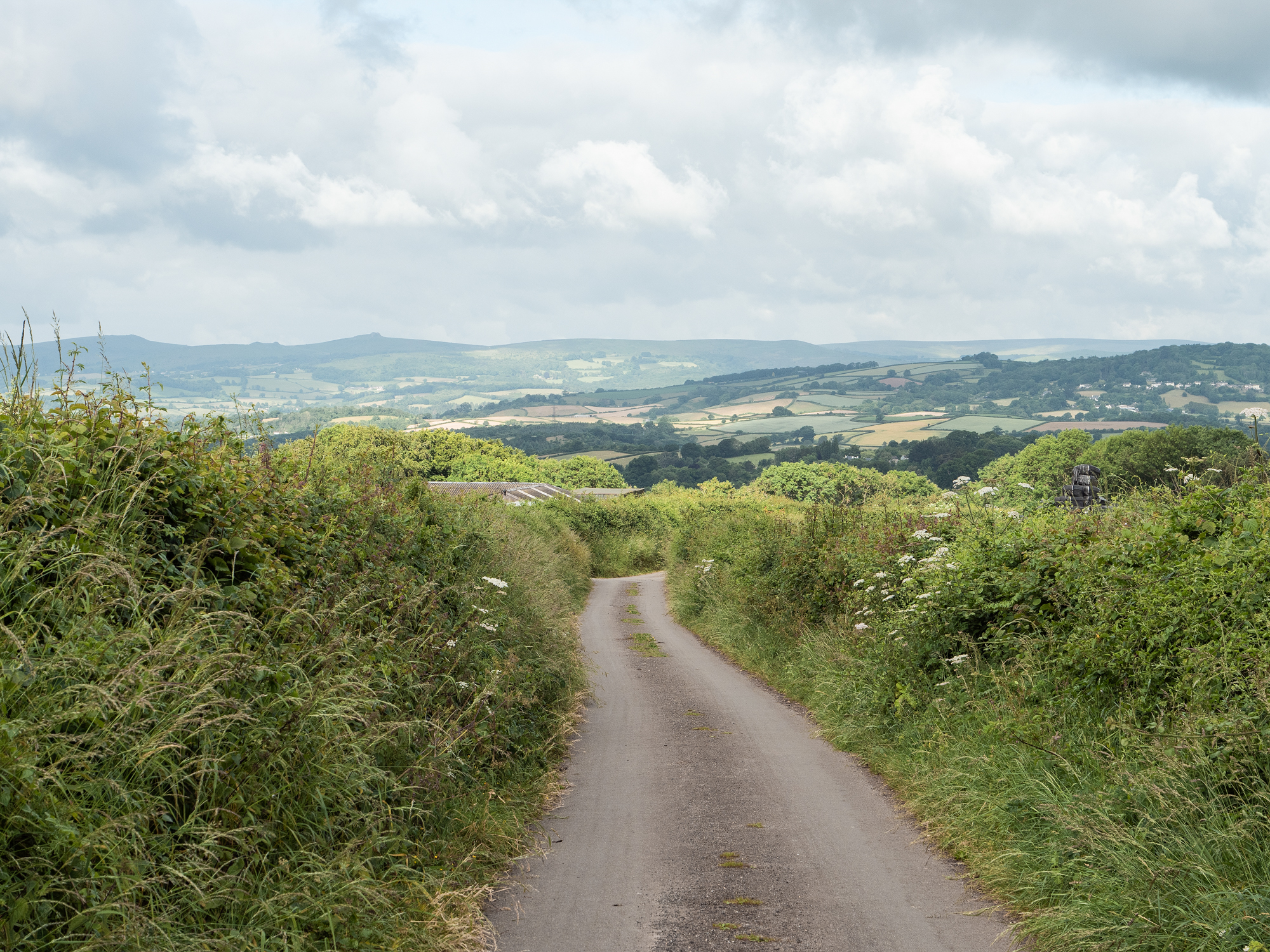 The walk up to Gappah was almost a scramble, there was so much grass and leaf growth. Each time I saw a gate ahead I wondered if I’d be able to open it or find some other way over it. Soon the overgrown path was behind me and open fields were ahead. Looking back is impossible not to do here, and it’s an excellent place to sit and watch corvids circling, study the skyline of the moor, and wonder how life on the A38 below can seem so frenetic while life on a high hill can still be so quiet and calm.
