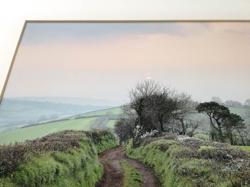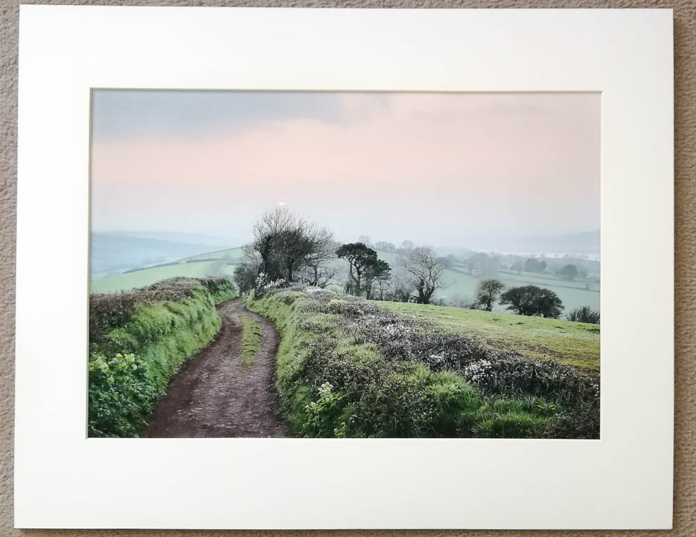 And here is an example of a bespoke printed image. One of my green lane photographs printed to A3 size on Fotospeed Platinum Etching paper and enhanced by mounting in Daler conservation matte board, ready for framing. These fine art papers are expected to have a life expectancy against fading of at least 80 years when used with pigment inks, and the conservation mount and tapes used serve to enhance that.